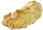 Dopo aver ottenuto dei cilindretti di pasta di mandorle ed aver precedentemente sfilettato delle mandorle bollite e spellate, rotolare i nostri biscotti su questi ultimi e dando una forma a mezzaluna, riporre in teglia.